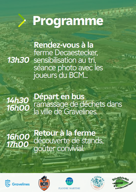 Dès votre arrivée, vous serez accueillis pour un temps de sensibilisation au tri des déchets et à la préservation de l’environnement, grâce à la présence des associations partenaires. Vous aurez également l’occasion de rencontrer les joueurs professionnels du BCM Gravelines-Dunkerque, venus spécialement pour soutenir cette action citoyenne.